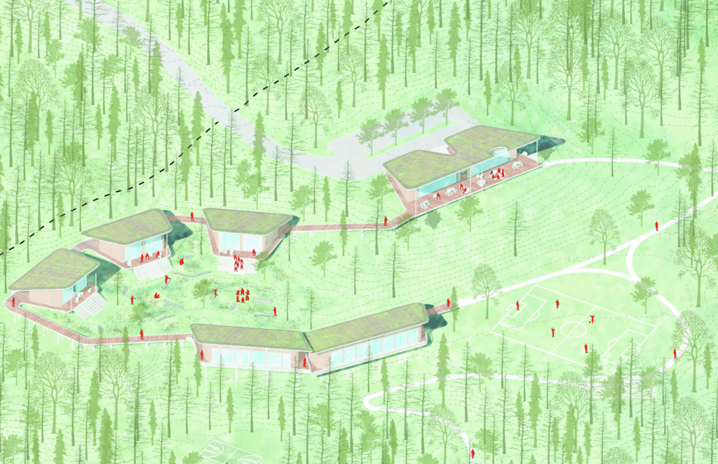 Parrott Creek Child & Family Services – an 80-acre creekside facility in Portland, Oregon – supports some of Portland’s most vulnerable community members: children and families caught up in the child welfare and juvenile justice systems. Inspired by Parrott Creek’s mission and its own ongoing effort to re-imagine and improve its 80-acre site, this interdisciplinary studio explored notions of trauma-informed design as a methodology for forward-looking design interventions. The studio’s inquiry included research, engagement with the Parrott Creek community and site, strategic planning scenarios, and ultimately design of planning-scale, site-scale, and building-scale proposals.