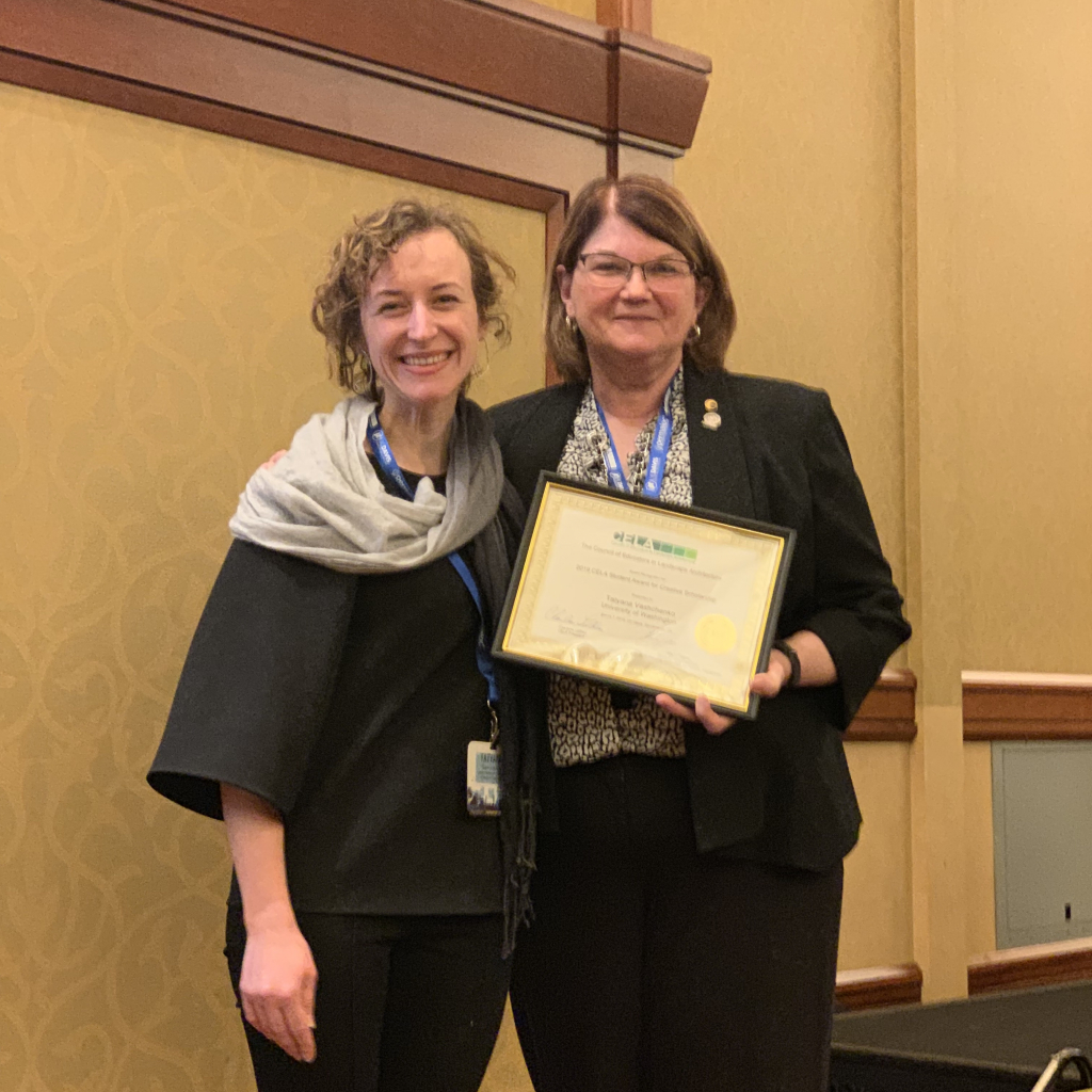 We are thrilled to announce that Tatyana Vashchenko is being honored today at the Council for Educators in Landscape Architecture’s (CELA) Annual Conference as the recipient of the 2019 Student Award for Creative Scholarship.