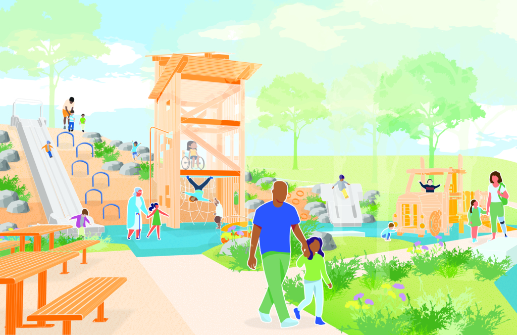 Last week, the Agency team held a virtual public meeting to reveal the design vision for the Robbins Farm Park Playground in Arlington, MA. This third and final public session built upon months of close collaboration with community members, park stakeholder groups, and the Town of Arlington to deliver a play space designed with universally inclusive principles.