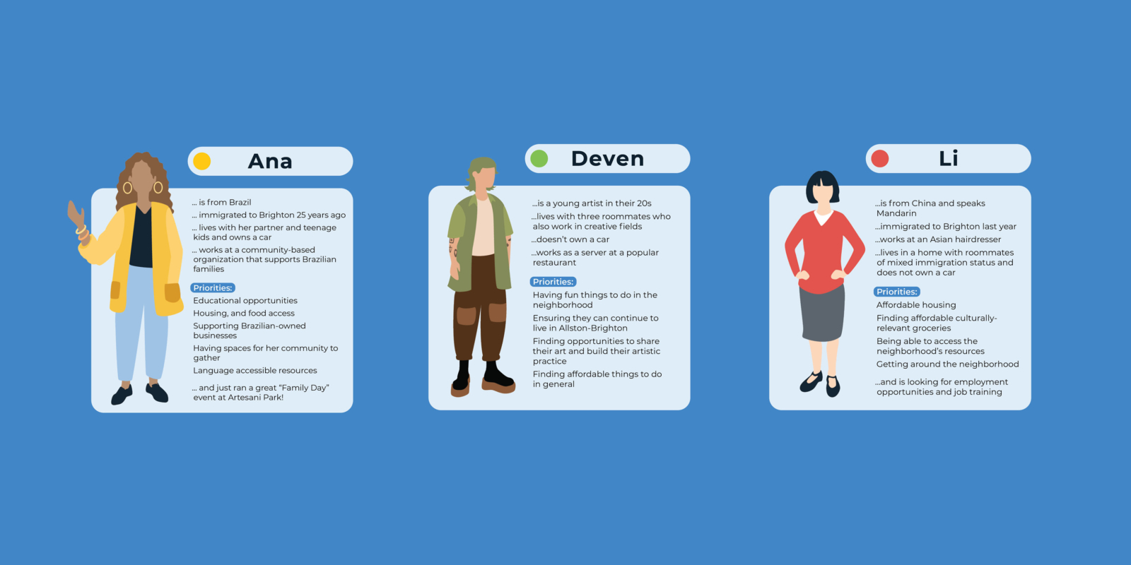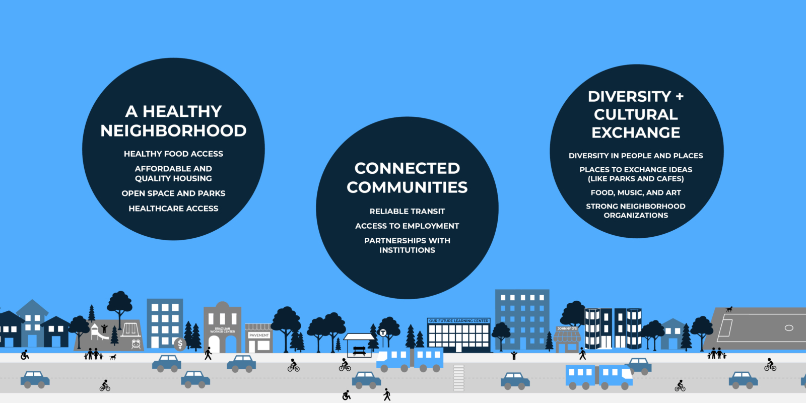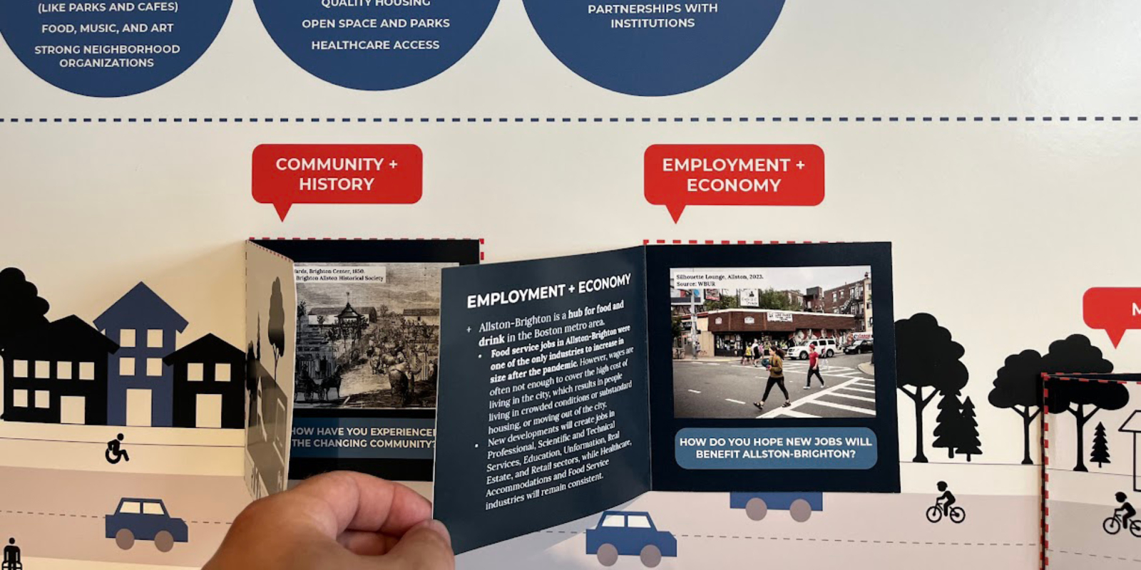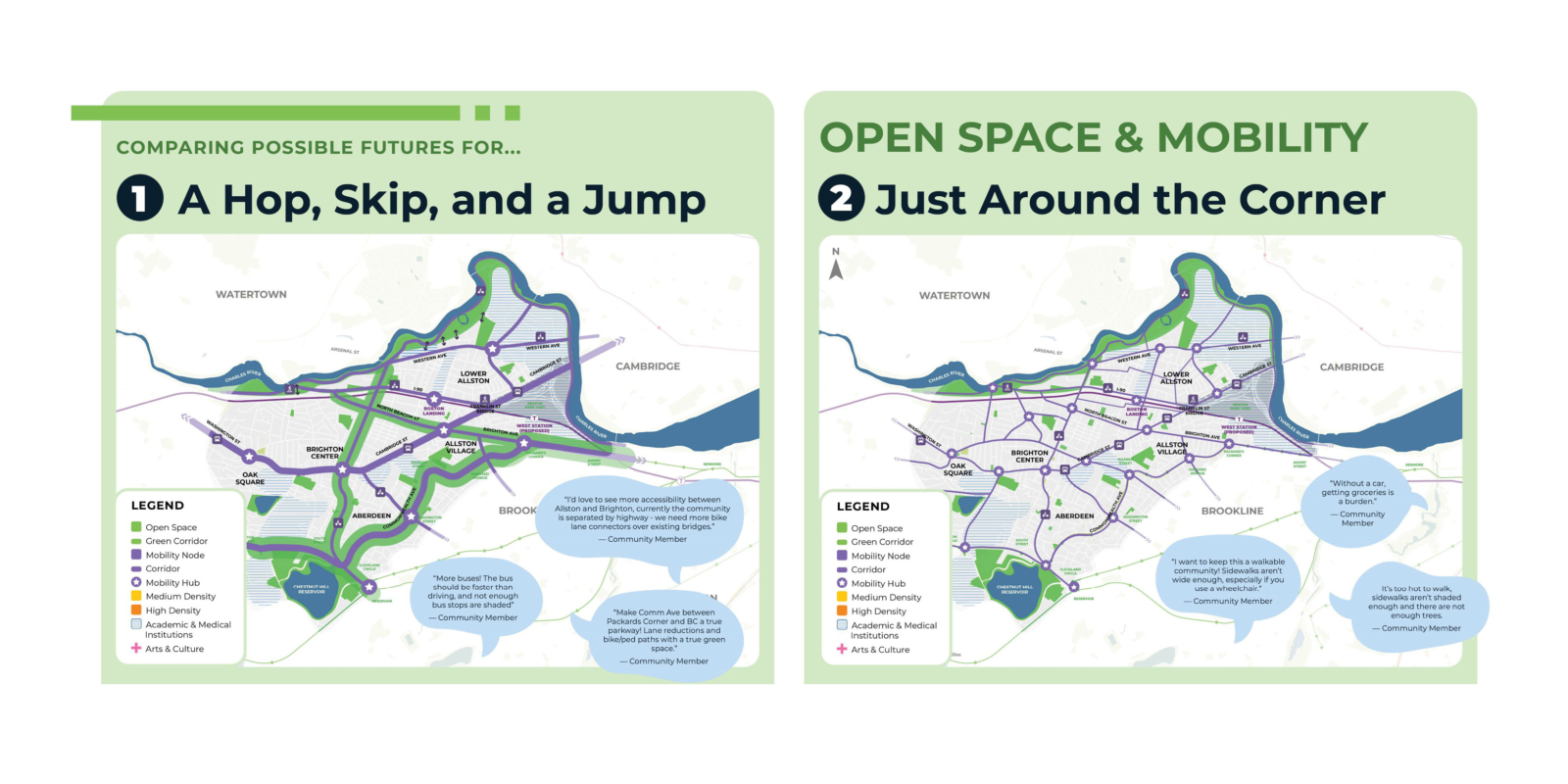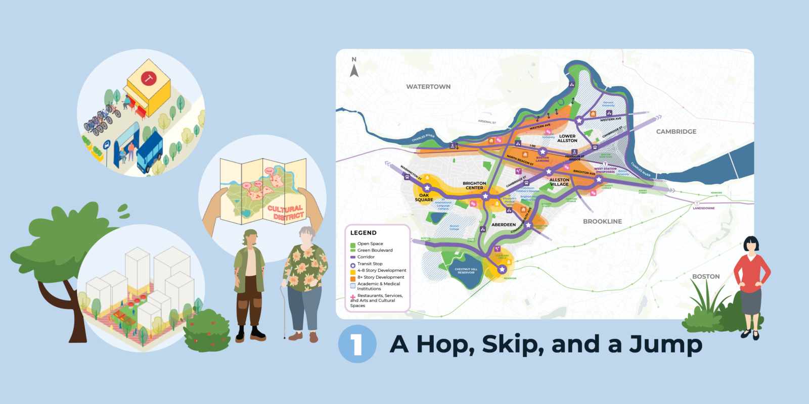 Allston and Brighton are distinct neighborhoods and are home to a high percentage of young adults, people born outside of the United States finding their first footholds in the Boston area, and a thriving food and art community. From neighborhood centers like Oak Square, to the thriving Allston Village food scene, to the quickly growing Boston Landing district, the two neighborhoods include a diverse array of typologies and cultures. The neighborhoods are bordered by some of the city’s biggest educational institutions, including Harvard University, Boston University, and Boston College, whose evolution creates additional pressures on the neighborhood.