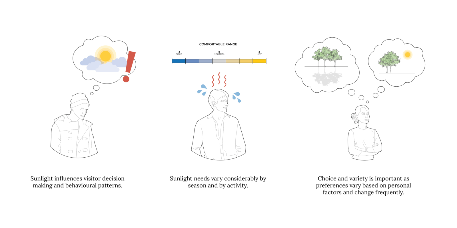 1. Identify how to define the needs of Boston’s parks (focused on the Back Bay Fens and Riverway) in relation to sunlight, shade, and shadows in a way that is defensible and grounded in scientific data.