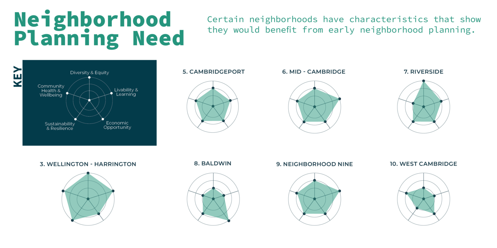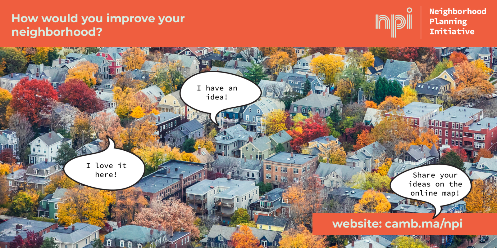 Agency worked with the City to define an overall brand and standards for the Neighborhood Planning Initiative (NPI) process. Agency led completion of the first three neighborhood action plans: Wellington-Harrington, Mid-Cambridge, and Neighborhood Nine. This included neighborhood-specific research and analysis, an equity-driven approach to NPI priorities, outreach materials, an engagement strategy, and final report design. The Agency team worked closely with graphic designer Michael Tavilla on the development of initiative branding and a graphic identity guide. Additional work has continued to support the City’s ongoing neighborhood engagement and relationship building. More information can be found on the City’s NPI website.