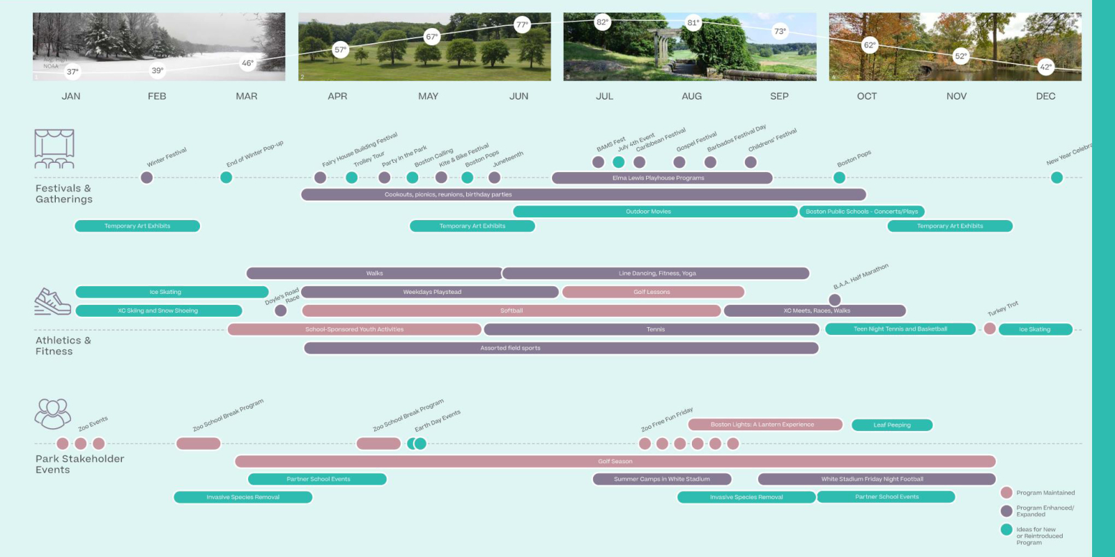 Agency led the public engagement, planning, and programming for an effort led by Reed Hilderbrand in collaboration with MASS Design Group and a broad team of ecology, engineering, economic, and engagement experts to create a community driven action plan for an engaging and diverse Franklin Park.