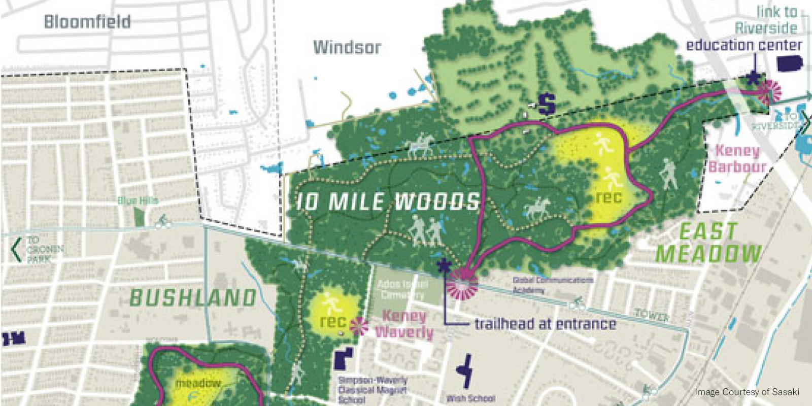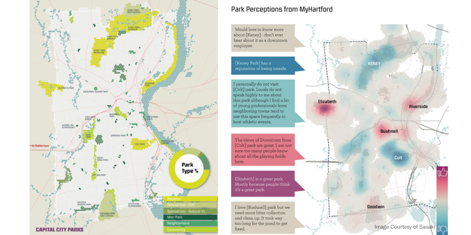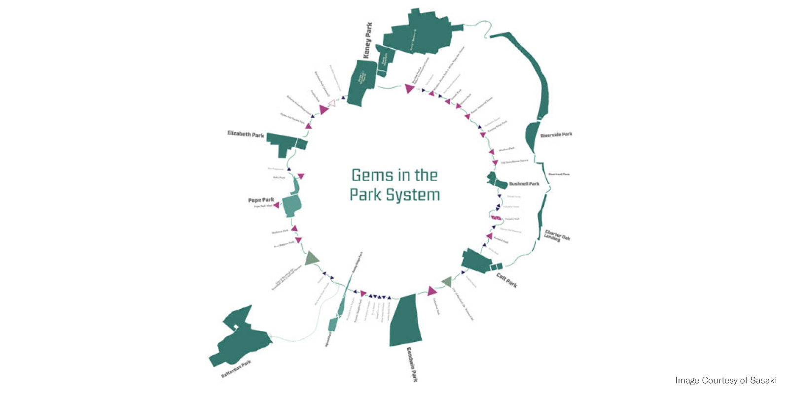 Hartford’s park and recreation system is an incredible amenity for the city and capital region, with its long history of Olmsted-led design and planning, abundant acreage of urban parks, riverfront access and a diverse community of users. Yet this abundance is also a challenge for the system, with maintenance challenges, a need for improved equity and a desire for more partnerships to help steward the system. The plan was led by Gina Ford and Brie Hensold while at Sasaki, with the support of Heller & Heller Consulting, Inc. and Fitzgerald & Halliday, Inc.