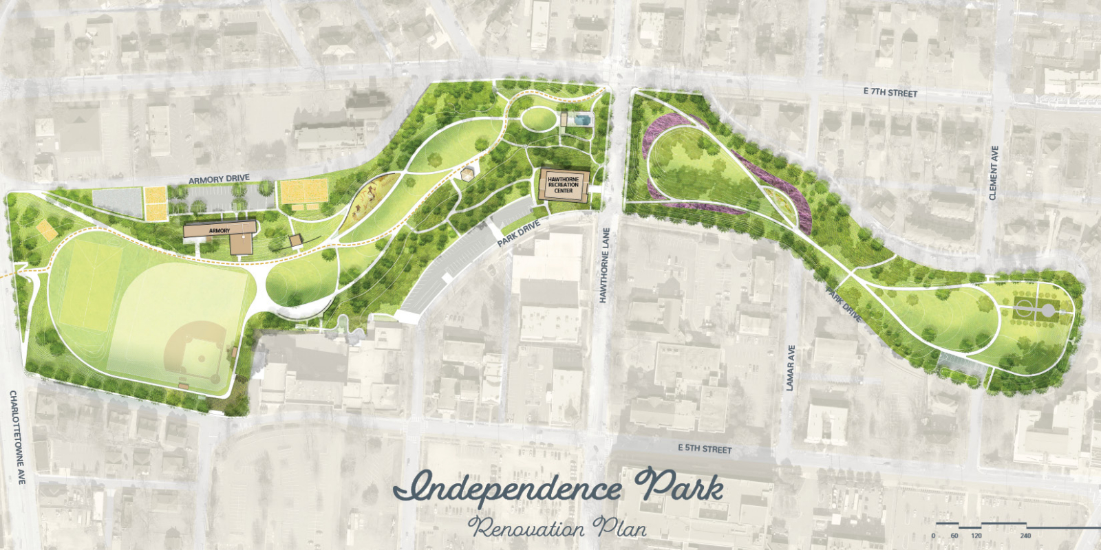 Independence Park, Charlotte, North Carolina’s first public park, is currently undergoing a renovation planning and design process under the guidance of Mecklenburg County Park and Recreation and Asset and Facilities Management. This effort has centered around identifying and curating the park’s many historic, culturally and ecologically significant qualities: a historic memorial fountain, a beautiful WPA-era amphitheater, extensive stonework walls, and mature trees that form a cathedral-like canopy.