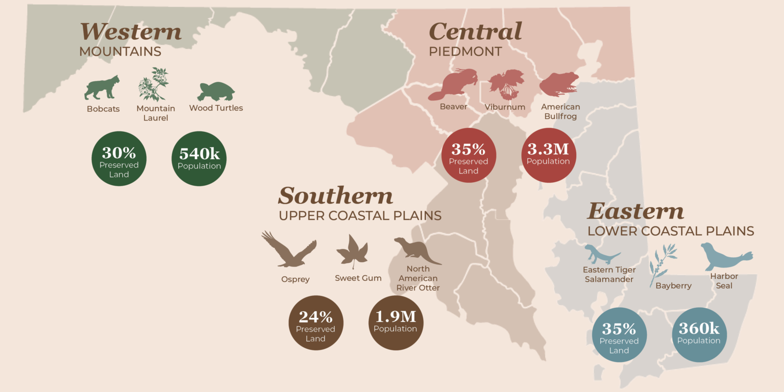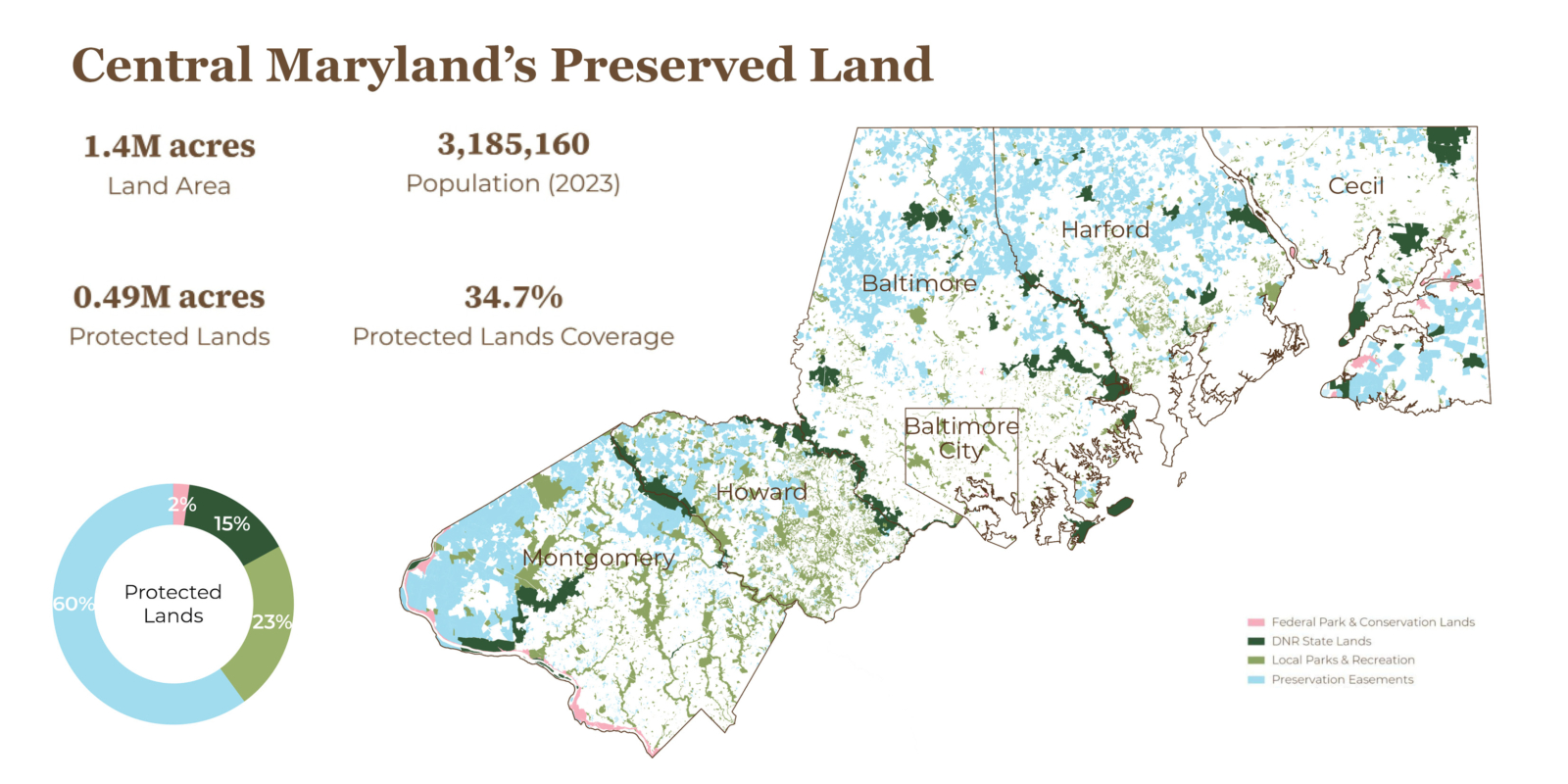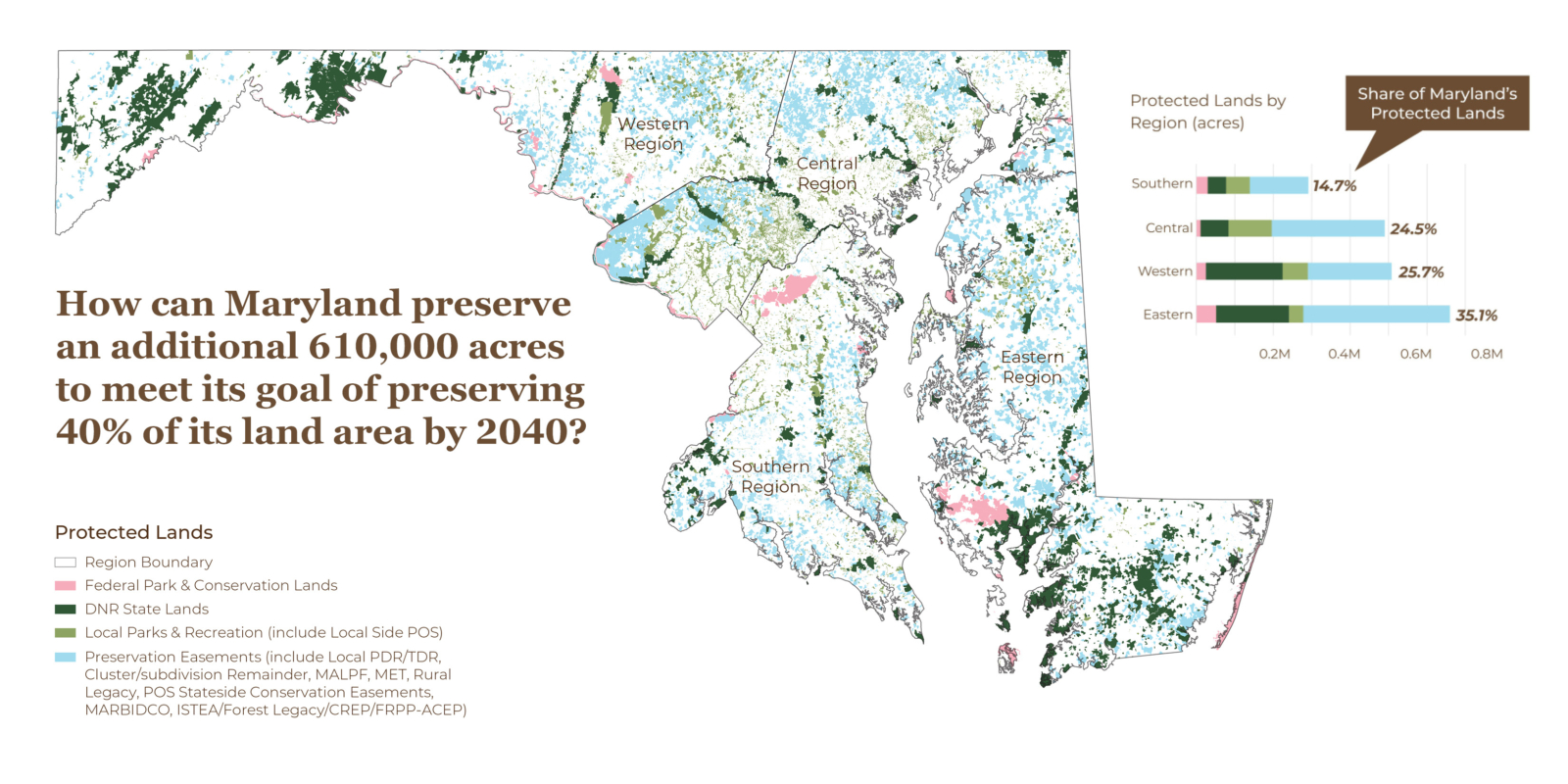 The state of Maryland has never shied away from being a place of firsts – the first passenger railroad, the first television station, and the first state park and forest system. In 2024, Maryland also became one of the first states to pledge and exceed goals to preserve 30% of its land area by 2030, causing the state’s governor to set a new and ambitious goal to preserve another 610,000 acres by 2040.