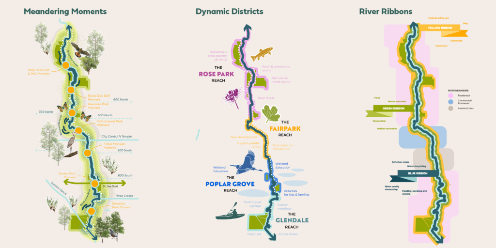 Feedback generated on the three concepts will be synthesized over the coming months into a vision for the corridor, and it will also provide a roadmap for Salt Lake City to achieve that vision. This includes recommendations for policy, guidelines for how the river should be maintained, and a schedule for improvements over the next decade.